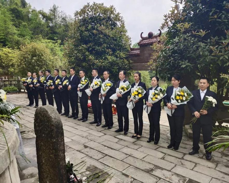 公司總經(jīng)理李政誼向烈士獻詞,表達對烈士的深切哀悼,然后帶領大家在紀念碑前開展了掃墓、默哀、獻花籃等活動。