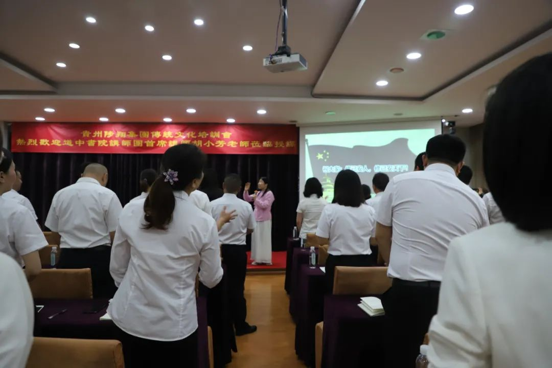 胡老師以重點闡釋四書五經(jīng)為開端,將優(yōu)秀傳統(tǒng)文化要義娓娓道來,引經(jīng)據(jù)典,圍繞國家、家庭和個人為主體,以企業(yè)、事業(yè)為主軸,風趣幽默的講解經(jīng)典傳統(tǒng)文化的淵源,以及對我們國家、企業(yè)和家庭的深遠作用與意義。胡老師表示,做事先做人,做人看人品。良好的品德要從思想根源抓起,修讀優(yōu)秀傳統(tǒng)文化是樹人立德之根基。四書五經(jīng)等諸多圣賢經(jīng)典文著蘊含做人、做事、治家、治企、治國之大道,我們當研讀并致用。