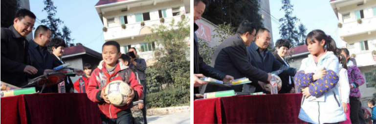 在貴定縣中國(guó)運(yùn)動(dòng)員希望小學(xué)操場(chǎng),慰問團(tuán)舉行了“愛心捐贈(zèng)儀式。儀式上,慰問團(tuán)將捐贈(zèng)的籃球、足球、羽毛球、兵乓球、跳繩等體育用品分發(fā)給貧困學(xué)生,并給他們組裝了籃球架和兵乓球架,勉勵(lì)他們發(fā)奮學(xué)習(xí),爭(zhēng)取早日成才,回報(bào)社會(huì)。中國(guó)運(yùn)動(dòng)員希望小學(xué)校長(zhǎng)羅紹明對(duì)慰問團(tuán)的愛心善舉表示感謝,他說到:“中國(guó)運(yùn)動(dòng)員希望小學(xué)地處大山深處,學(xué)校大多數(shù)學(xué)生為農(nóng)村留守兒童,特困學(xué)生較多,社會(huì)力量為學(xué)校建立體育設(shè)備,捐贈(zèng)體育用品,這豐富了同學(xué)們的課余生活,改繼變同學(xué)們的世界觀發(fā)揮了非常積極的作用”。同時(shí),他也表示,希望社會(huì)各界能夠支持希望小學(xué),關(guān)愛留守兒童,關(guān)心貧困學(xué)生。