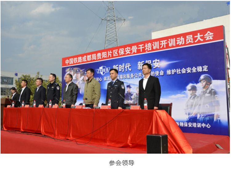 參會(huì)領(lǐng)導(dǎo)也分別對(duì)此次培訓(xùn)提要求、作指示。貴州省鐵路護(hù)路辦周玉春主任:鐵路成都局集團(tuán)公司非常重視鐵路安保工作,今年在營(yíng)運(yùn)成本居高不下的情況下還提高了保安員工資福利待遇,希望參訓(xùn)保安員們要提高思想認(rèn)識(shí),加強(qiáng)學(xué)習(xí),珍惜機(jī)會(huì),不斷提升業(yè)務(wù)水平,維護(hù)好鐵路公共安全,在工作中履職盡責(zé),擔(dān)當(dāng)有為。貴州省公安廳治安總隊(duì)二處楊春暉處長(zhǎng):從近幾年我國(guó)公共安全事件案例,尤其是公眾場(chǎng)所治安、暴力恐怖襲擊等方面深入淺出地分析了當(dāng)前公共安保工作的形勢(shì)。指出鐵路保安作為專業(yè)化的鐵路治安防范組織和公安機(jī)關(guān)的一支重要輔助力量,在保障鐵路安全、維護(hù)治安秩序、預(yù)防和制止違法犯罪活動(dòng)、樹立中國(guó)鐵路形象等方面發(fā)揮了非常重要的作用。楊處要求參訓(xùn)的保安隊(duì)員們?cè)谂嘤?xùn)過程中要尊重教員,遵守培訓(xùn)中心的管理規(guī)定,克服各種困難,積極認(rèn)真搞好培訓(xùn),學(xué)精應(yīng)知應(yīng)會(huì)知識(shí),練就過硬專業(yè)技能,在今后的工作中能學(xué)以致用。貴陽(yáng)鐵路公安處保安支隊(duì)胡宏明副支隊(duì)長(zhǎng):首先肯定了貴州陟翔保安培訓(xùn)中心的辦學(xué)能力,對(duì)參訓(xùn)的保安員精神振作、姿態(tài)端正、作風(fēng)嚴(yán)謹(jǐn)、紀(jì)律嚴(yán)明提出表?yè)P(yáng),要求各位參訓(xùn)人員要認(rèn)清當(dāng)前鐵路安保工作形勢(shì),端正學(xué)習(xí)態(tài)度,珍惜此次培訓(xùn)機(jī)會(huì),自覺遵章守紀(jì),克服各種困難,扎實(shí)練好本領(lǐng),力爭(zhēng)取得好的培訓(xùn)效果。