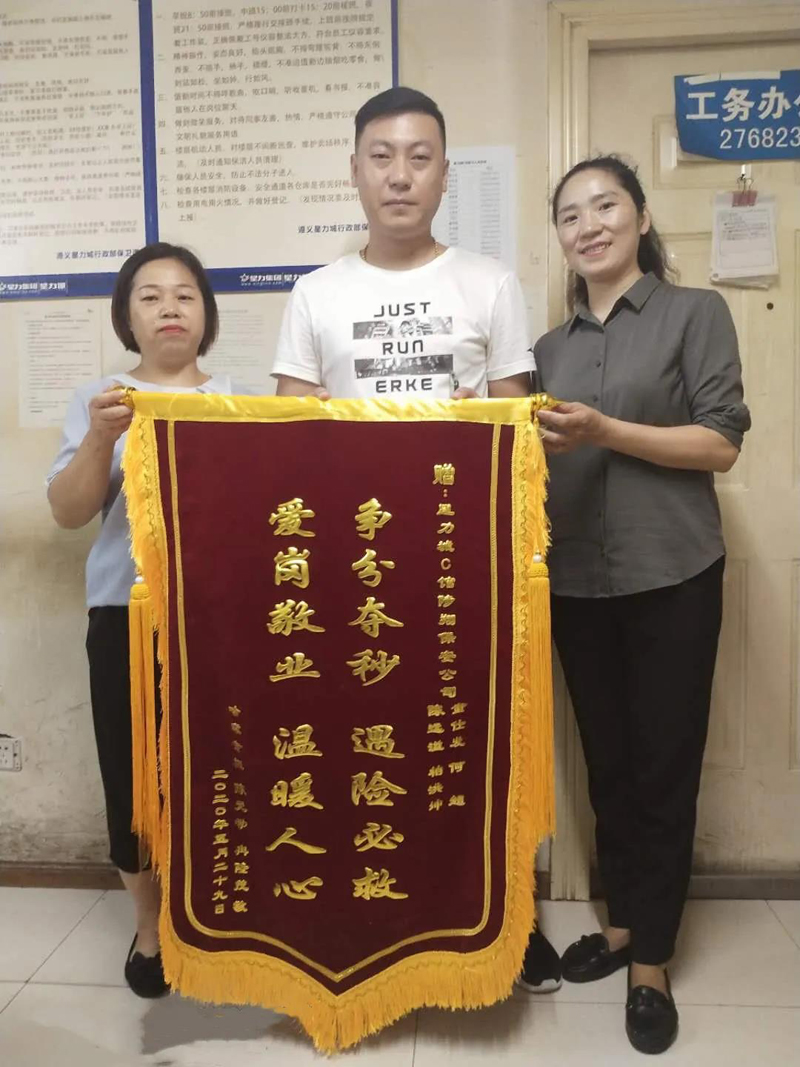 經(jīng)半個多月的治療,患者于2020年7月7日康復出院。出院后,患者在家屬的陪同下,將一面印有“爭分奪秒、遇險必救、愛崗敬業(yè)、溫暖人心”的錦旗送至我公司駐點星力城保安隊員手中,并再三表示感謝。隊員們紛紛表示:“這是我們的份內(nèi)之事,我們的職責就是為業(yè)主和客人的安全保駕護航”。